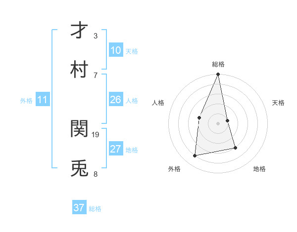 才村 関兎さんの総格は37画の5点!