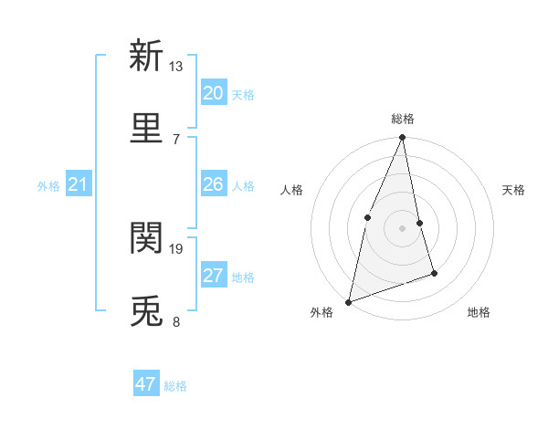 新里 関兎さんの外格は21画の5点!
