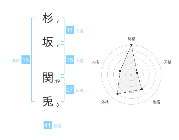 杉坂 関兎さんの総格は41画の5点!