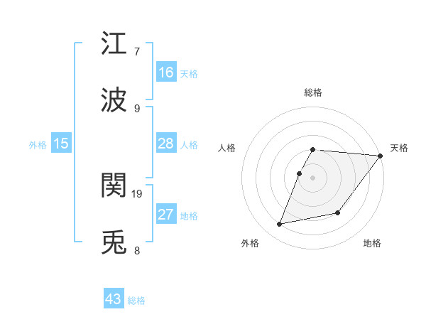 江波 関兎さんの総格は43画の2点!