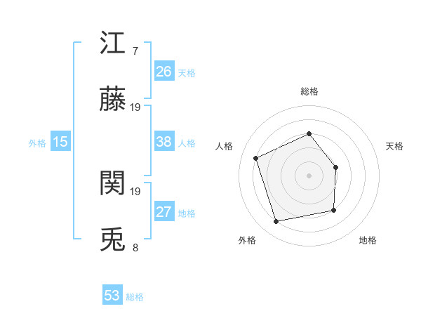 江藤 関兎さんの総格は53画の3点!