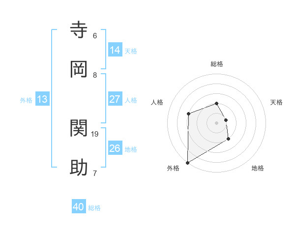 寺岡 関助さんの外格は13画の5点!