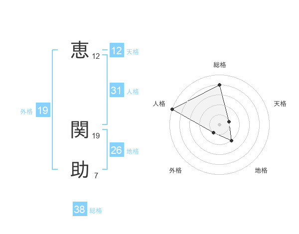 恵 関助さんの総格は38画の4点!