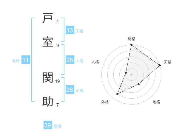 戸室 関助さんの総格は39画の5点!