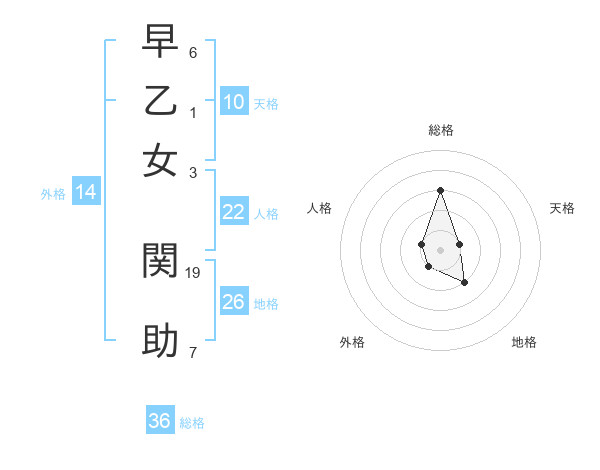 早乙女 関助さんを姓名の画数から五運を鑑定