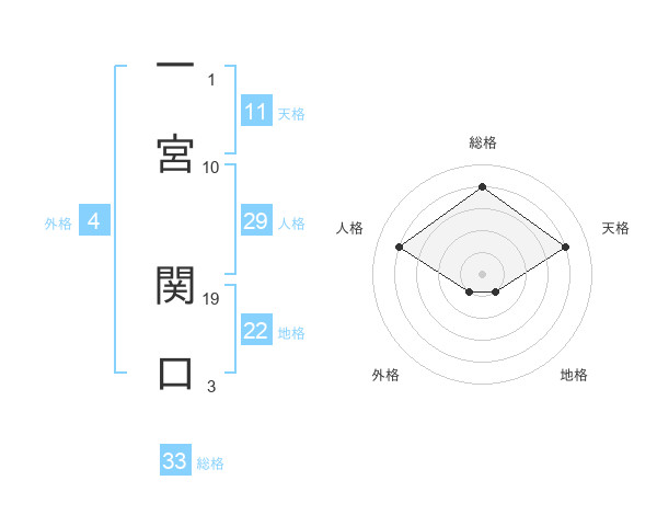 一宮 関口さんの地格は22画の1点!