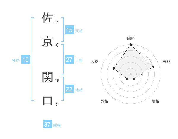 佐京 関口さんの総格は37画の5点!