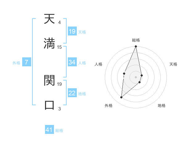 天満 関口さんの総格は41画の5点!