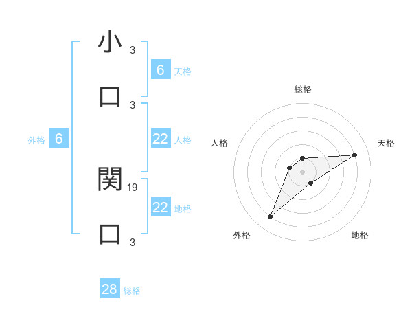 小口 関口さんの総格は28画の1点!