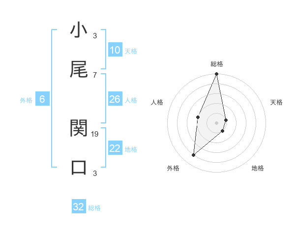 小尾 関口さんの総格は32画の5点!
