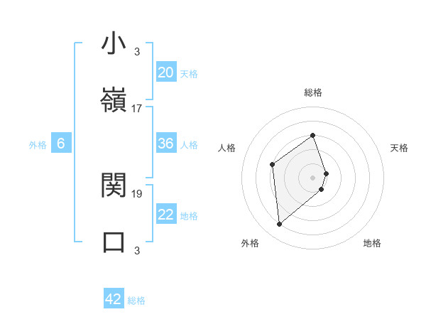 小嶺 関口さんの総格は42画の3点!