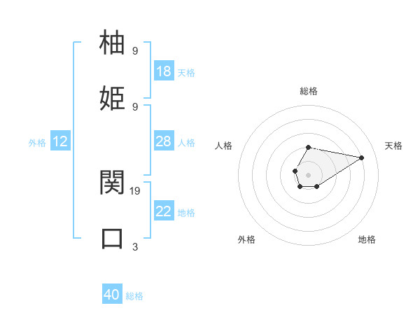 柚姫 関口さんの総格は40画の2点!