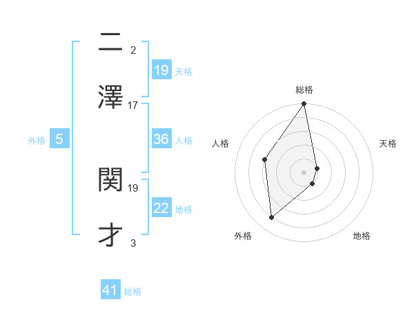 二澤 関才さんの総格は41画の5点!