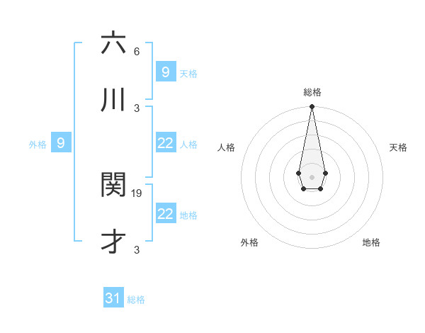 六川 関才さんの総格は31画の5点!