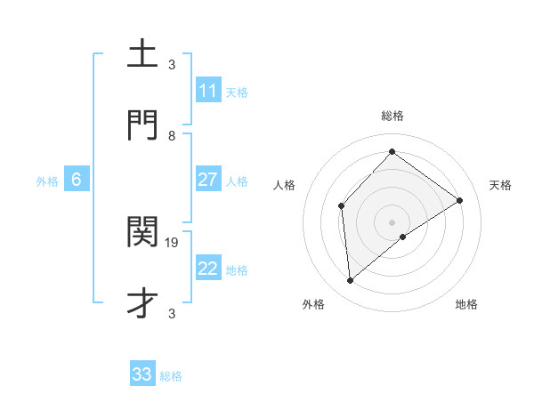 土門 関才さんの総格は33画の4点!