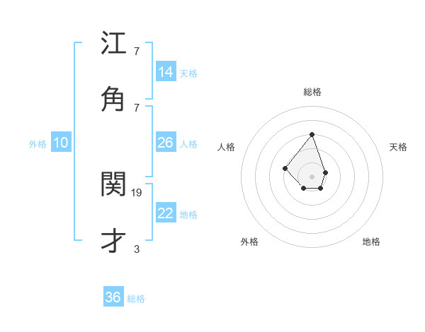 江角 関才さんの総格は36画の3点!