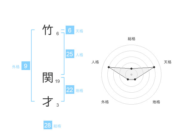 竹 関才さんの総格は28画の1点!