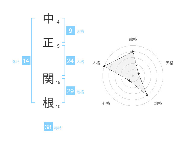 中正 関根さんの総格は38画の4点!
