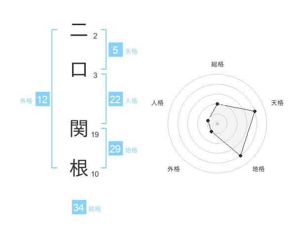 二口 関根さんの天格は5画の4点!