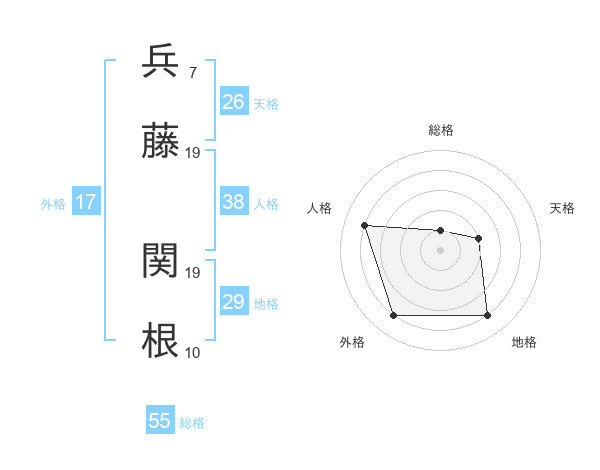 兵藤 関根さんの総格は55画の1点!