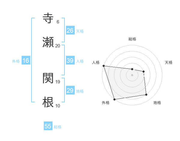 寺瀬 関根さんを姓名の画数から五運を鑑定