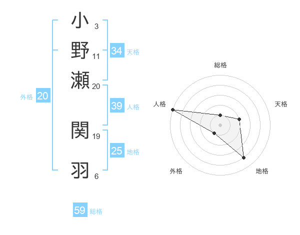 小野瀬 関羽さんを姓名の画数から五運を鑑定