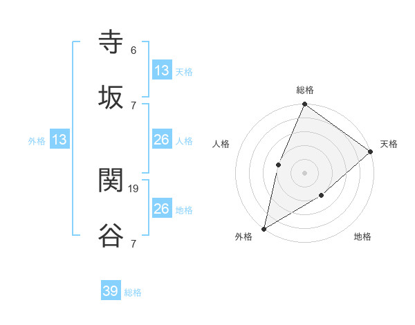寺坂 関谷さんの外格は13画の5点!
