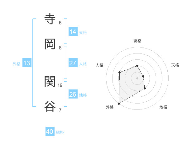 寺岡 関谷さんの外格は13画の5点!