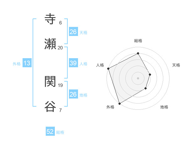 寺瀬 関谷さんの総格は52画の4点!