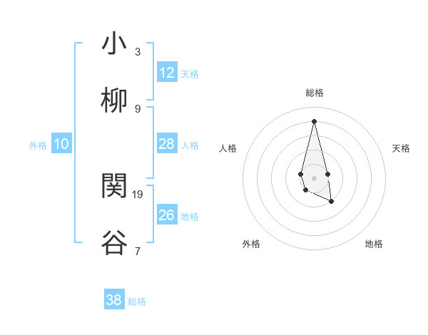 小柳 関谷さんの総格は38画の4点!