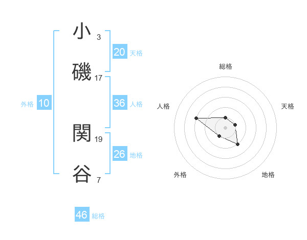 小磯 関谷さんの地格は26画の2点!