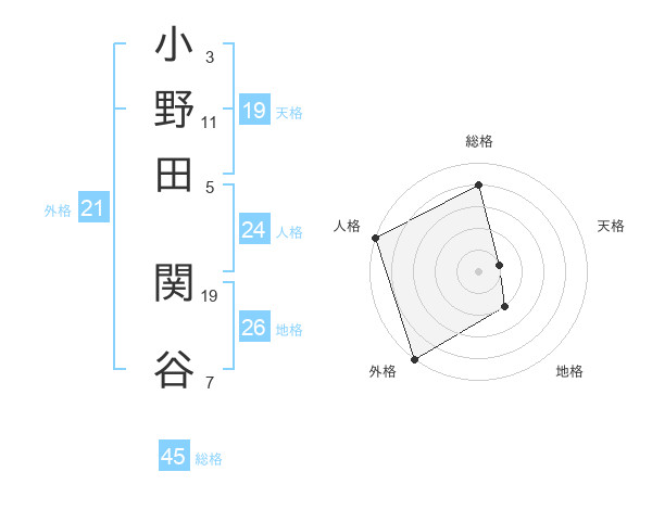 小野田 関谷さんを姓名の画数から五運を鑑定