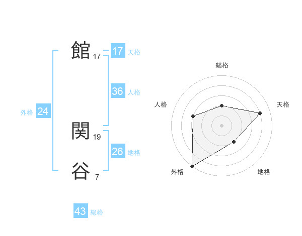 館 関谷さんの総格は43画の2点!