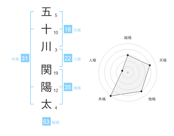 五十川 関陽太さんを姓名の画数から五運を鑑定