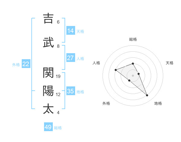 吉武 関陽太さんを姓名の画数から五運を鑑定