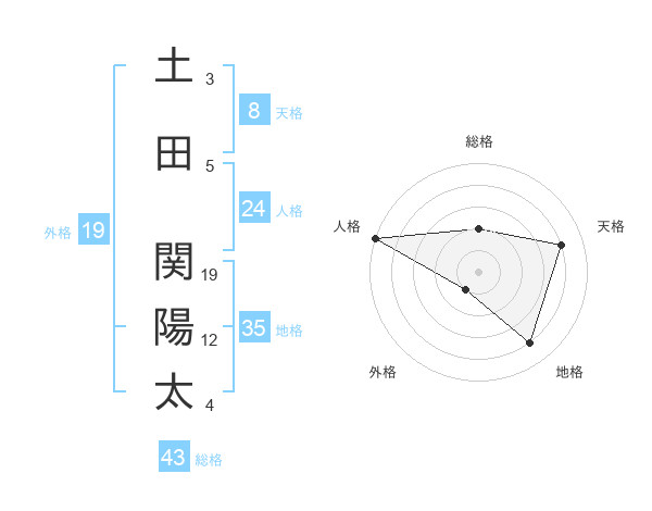 土田 関陽太さんを姓名の画数から五運を鑑定