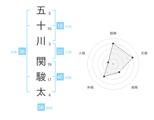 五十川 関駿太さんを姓名の画数から五運を鑑定