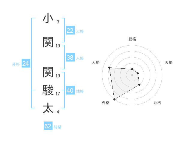 小関 関駿太さんを姓名の画数から五運を鑑定