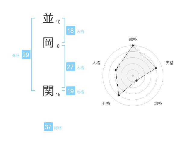 並岡 関さんの総格は37画の5点!