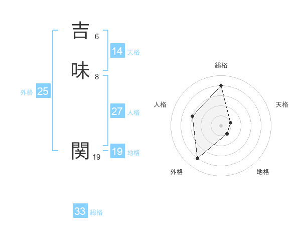 吉味 関さんの総格は33画の4点!