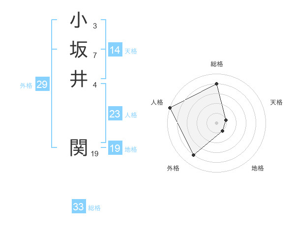 小坂井 関さんの総格は33画の4点!