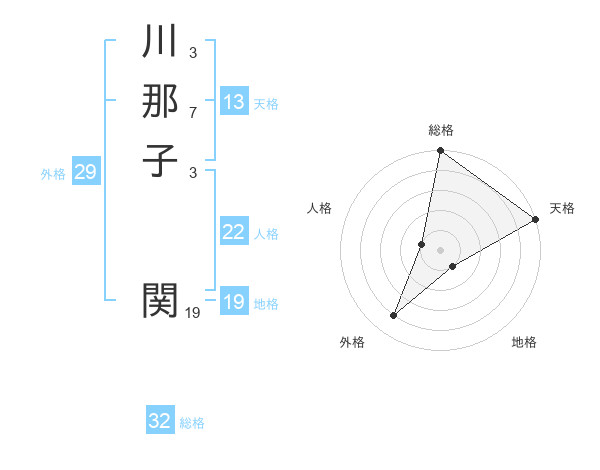 川那子 関さんの総格は32画の5点!