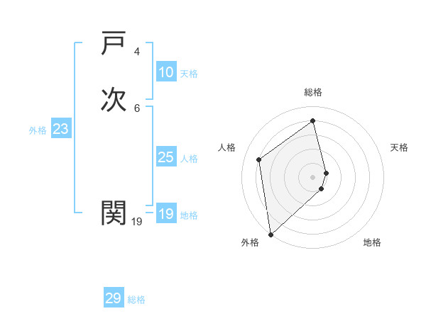 戸次 関さんの総格は29画の4点!