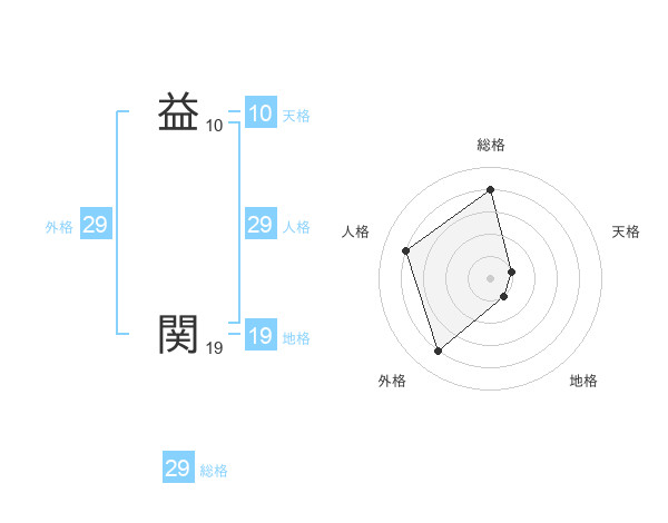 益 関さんの総格は29画の4点!