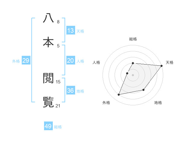 八本 閲覧さんを姓名の画数から五運を鑑定
