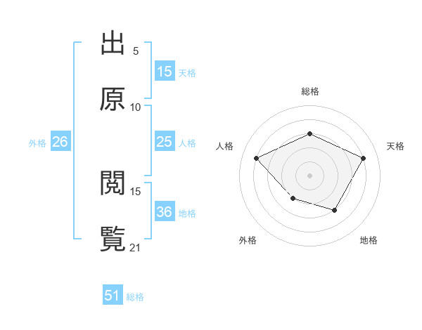 出原 閲覧さんを姓名の画数から五運を鑑定
