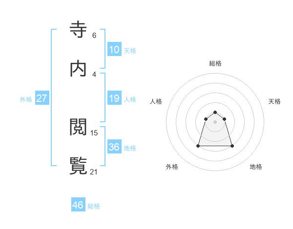 寺内 閲覧さんの総格は46画の1点!
