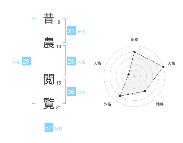 昔農 閲覧さんを姓名の画数から五運を鑑定