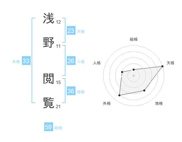 浅野 閲覧さんを姓名の画数から五運を鑑定