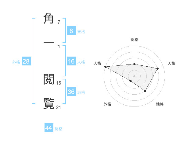 角一 閲覧さんの総格は44画の2点!